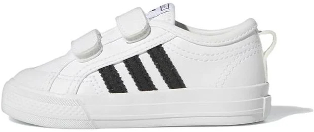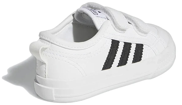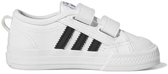 Klasyczny styl adidas Nizza na co dzień. Te buty dla dzieci są wygodne dzięki lekkiej, amortyzującej podeszwie środkowej. Paski zapinane na rzepy ułatwiają ich zakładanie (i zdejmowanie).